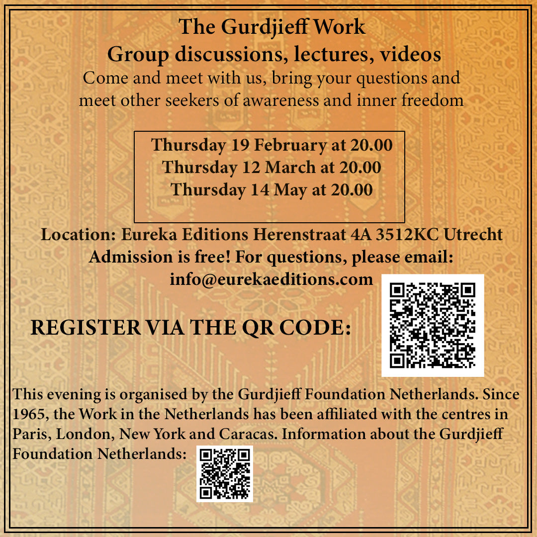 We are happy to invite you to our 'Gurdjieff Work evenings' organized at our bookshop together with the Gurdjieff Foundation in the Netherlands.
