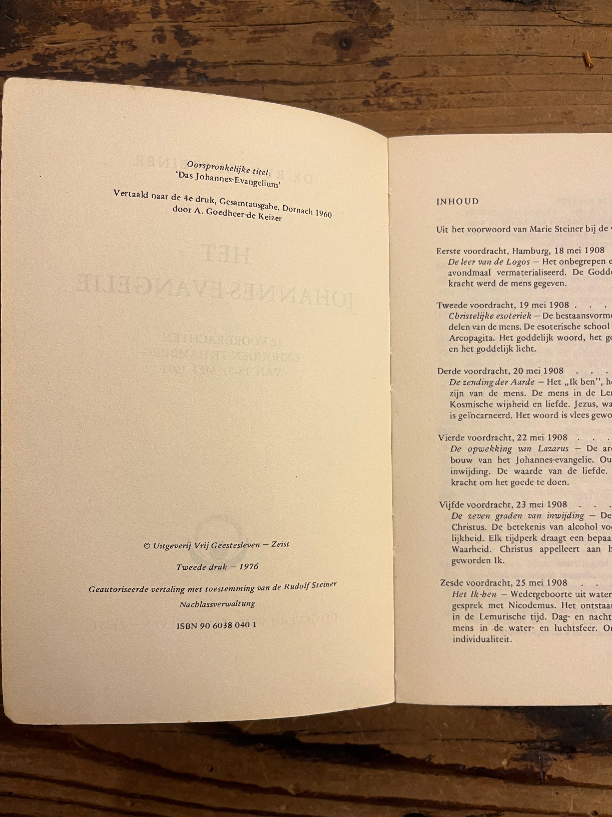 'Rudolf Steiner zag het Johannesevangelie als het meest esoterische van de evangeliën en gaf er voordrachten over, die een samenvatting vormen van zijn interpretatie. In zijn uitleg plaatst Steiner het evangelie in het grotere perspectief van de evolutie van de mensheid, de ontwikkeling van bewustzijn en lichamelijke evolutie, en bespreekt hij thema's als de opwekking van Lazarus, de inwijdingen, en de rol van de Jonkvrouw Sophia en de Heilige Geest.'