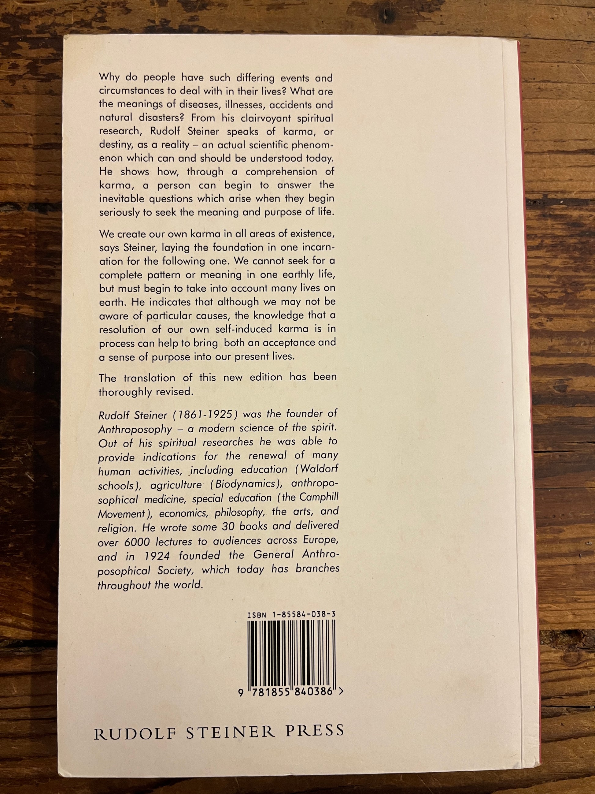 Why do people have such differing events and circumstances to deal with in their lives? What are the meanings of diseases, illnesses, accidents and natural disasters? From his clairvoyant spiritual research, Rudolf Steiner speaks of karma, or destiny, as a reality - an actual scientific phenomenon which can and should be understood today.