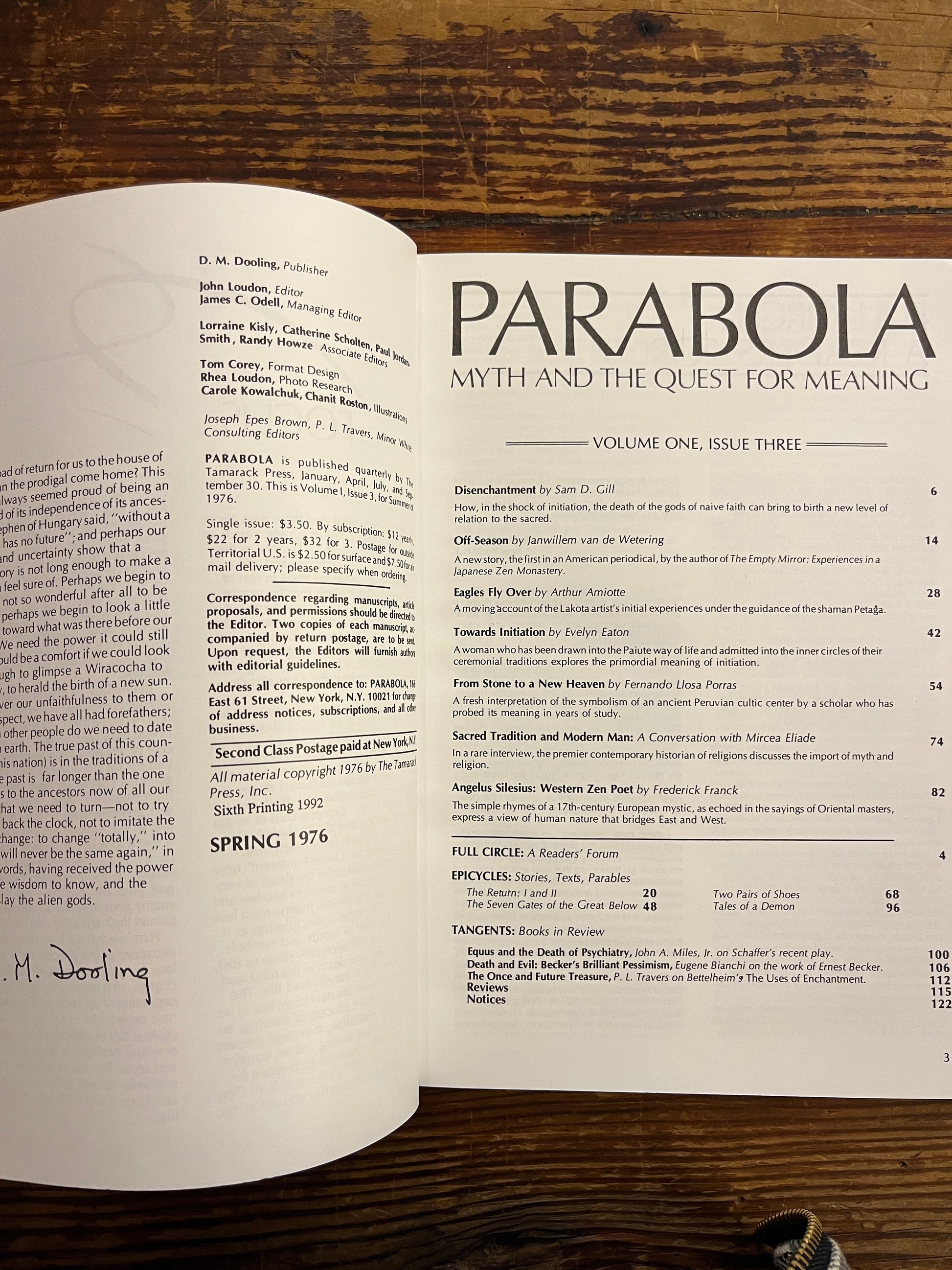 Parabola, Myth and the Quest for meaning, Volume One, Issue 3, Summer 1976