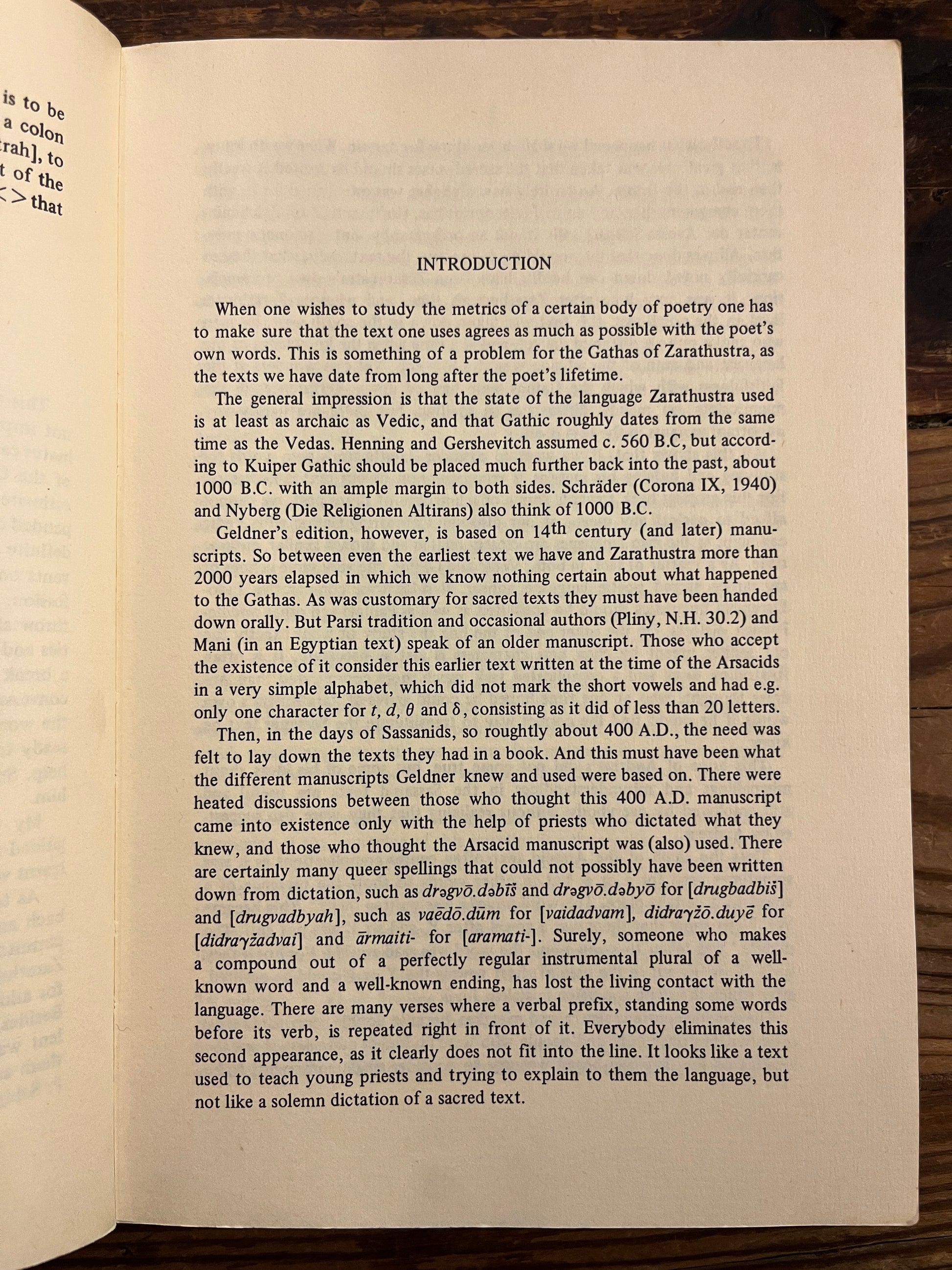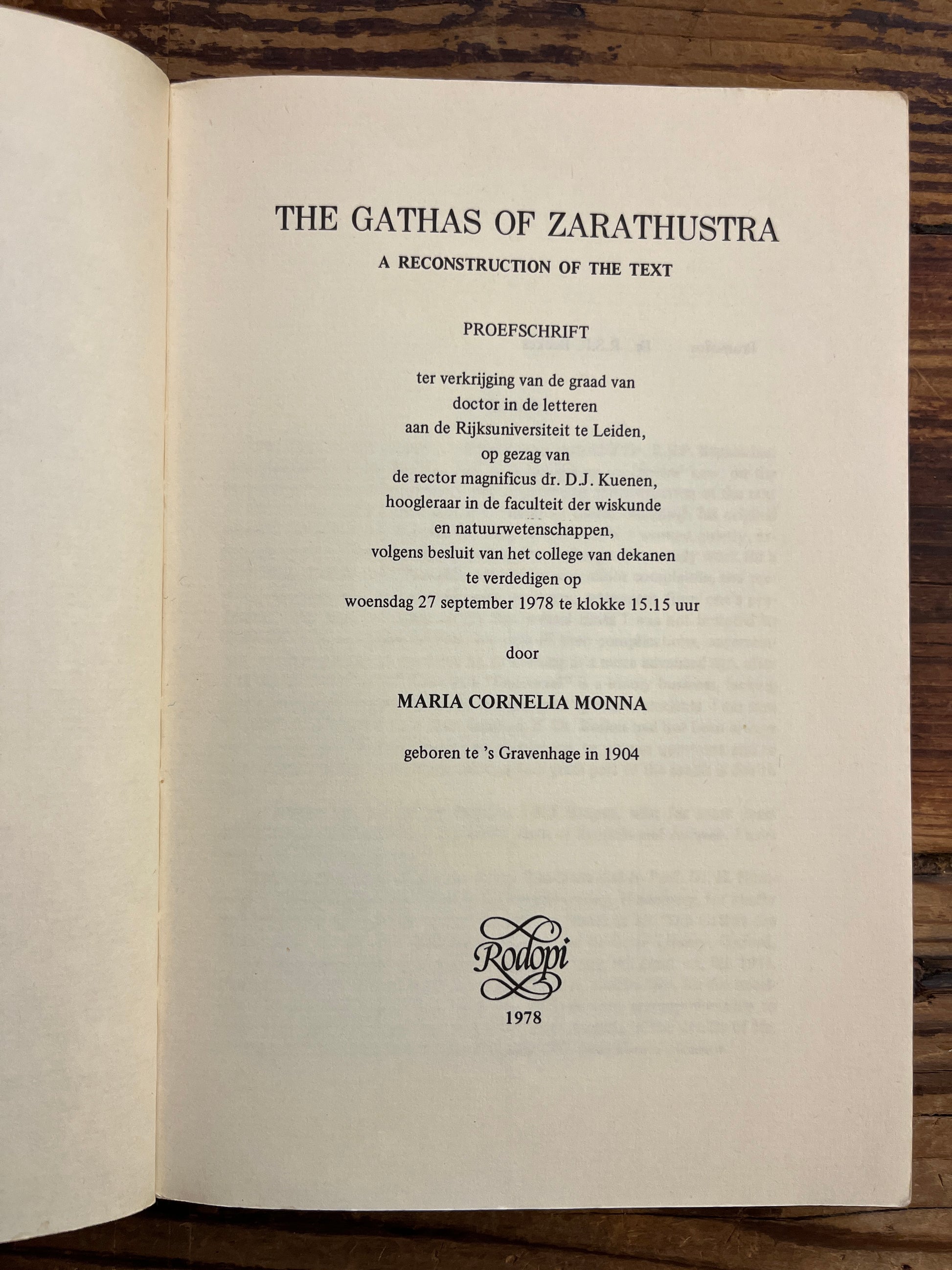 The Gathas of Zarathustra, a reconstruction of the text, M.C. Monna